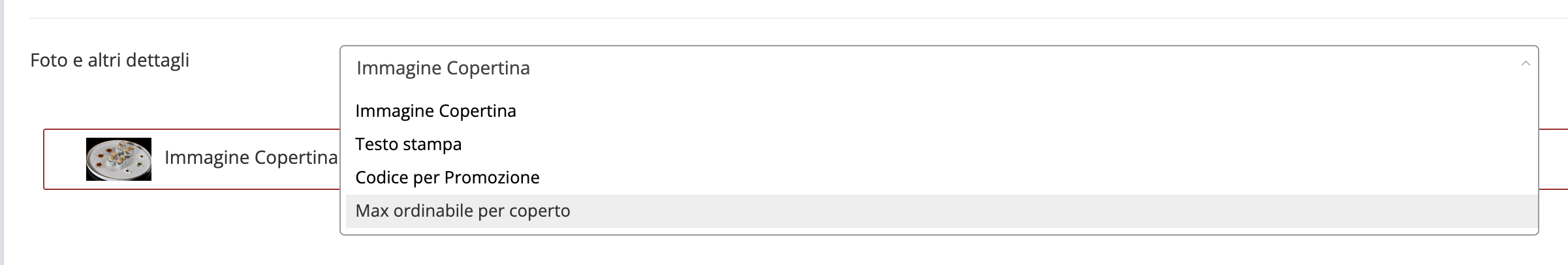 (Per fare questo, nella scheda del prodotto aggiungi la voce, in basso, "Max Ordinabile per coperto")