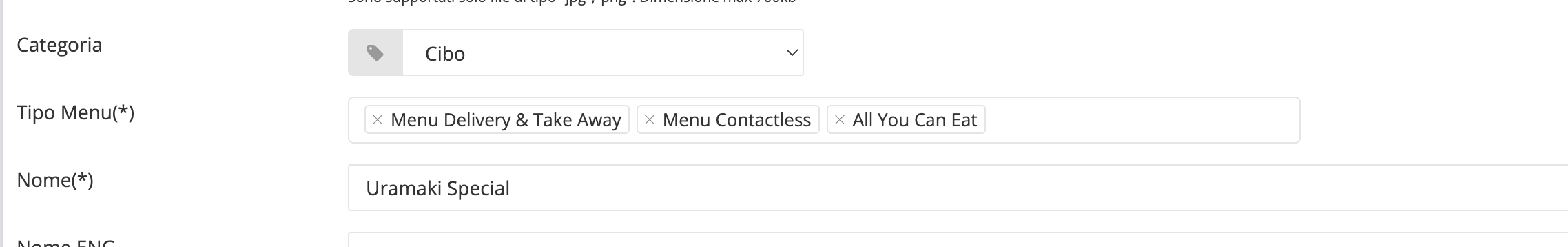 E' il classico backoffice di SeeYouFood. In particolare, per la modalità ALL YOU CAN EAT ti permette di impostare anche:
