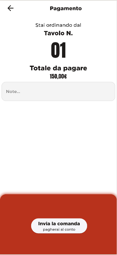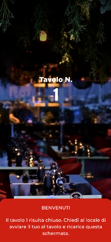 La webapp clienti si avvia nel momento in cui si punta con la fotocamera il qr code presente al tavolo di cui al punto precedente.