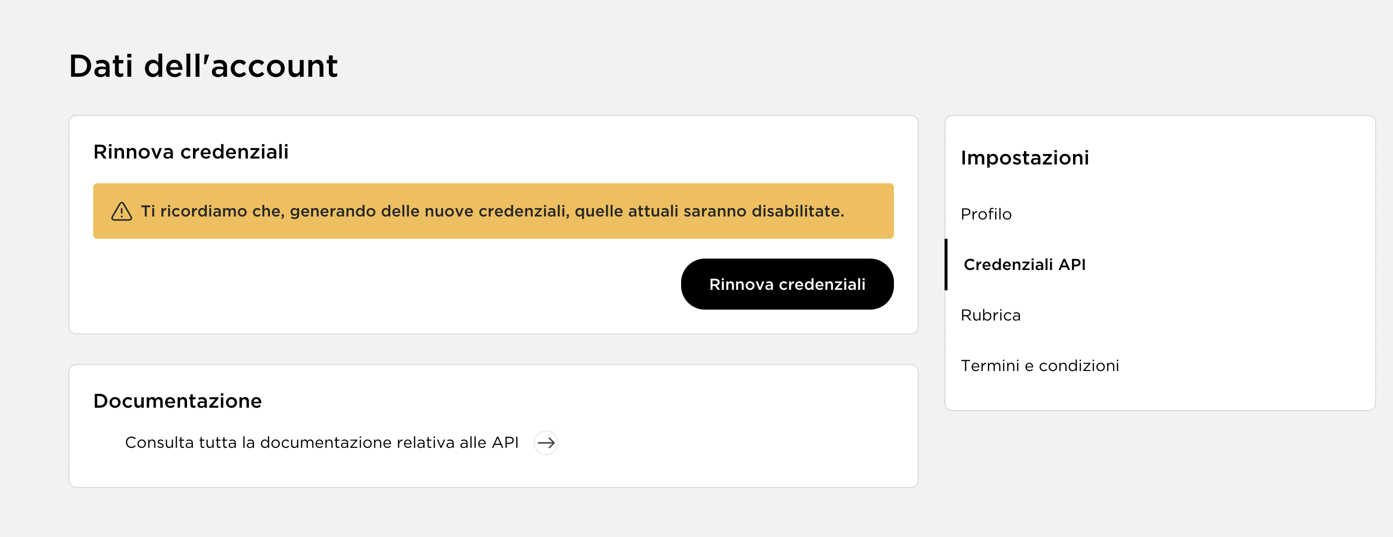 - Fornire a SeeYouFood le chiavi, che possono essere recuperate sul vostro account della piattaforma LAAS, andando in Impostazioni -> Credenziali API