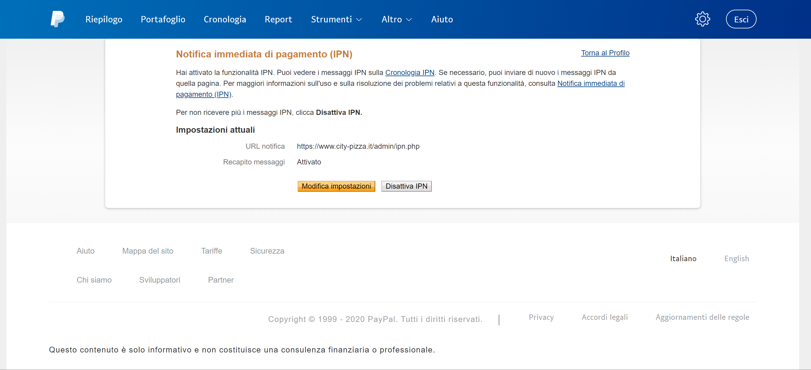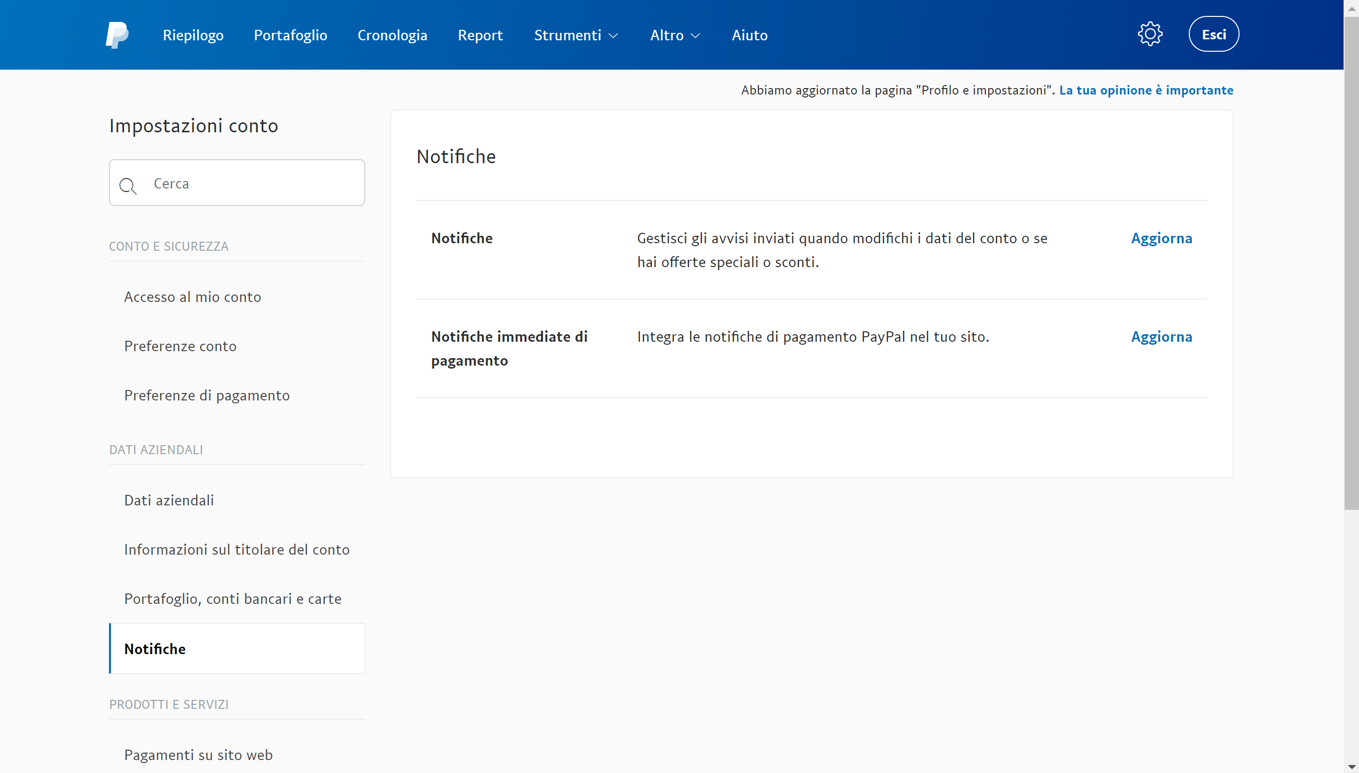 Aggiorna le Notifiche immediate di pagamento.