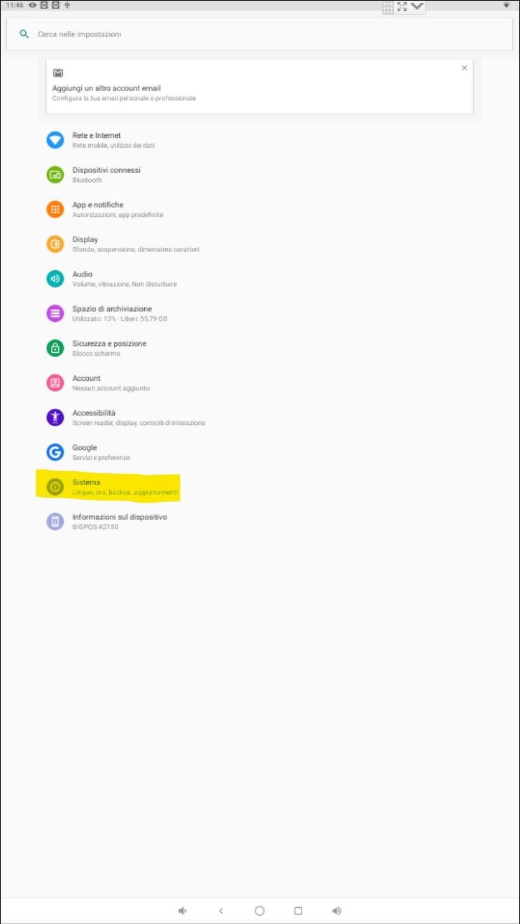 1. Apri la App delle impostazioni e seleziona "Sistema"