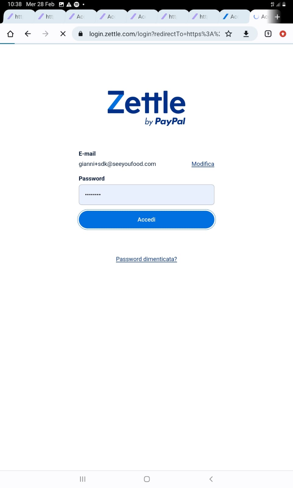 - Premere su LOGIN. A questo punto si apre la pagina sul portale zettle, eseguire il login e la conferma di accesso
